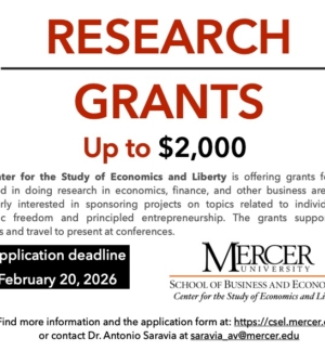 To make a financial contribution to the CSEL please fill out the online giving form. In the "remarks" box please indicate that your gift is for the Center for the Study of Economics and Liberty.